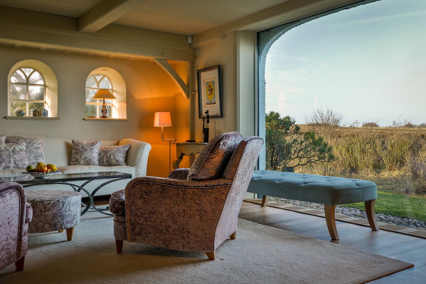 Reetgedecktes Einzelhaus inmitten der Braderuper Heide. Luxus-Anwesen mit Panoramablick, Kamin und vier Schlafzimmer. Bis zu sechs Personen können im Haus Wattenblick den perfekten Urlaub in der Braderuper Heide genießen.