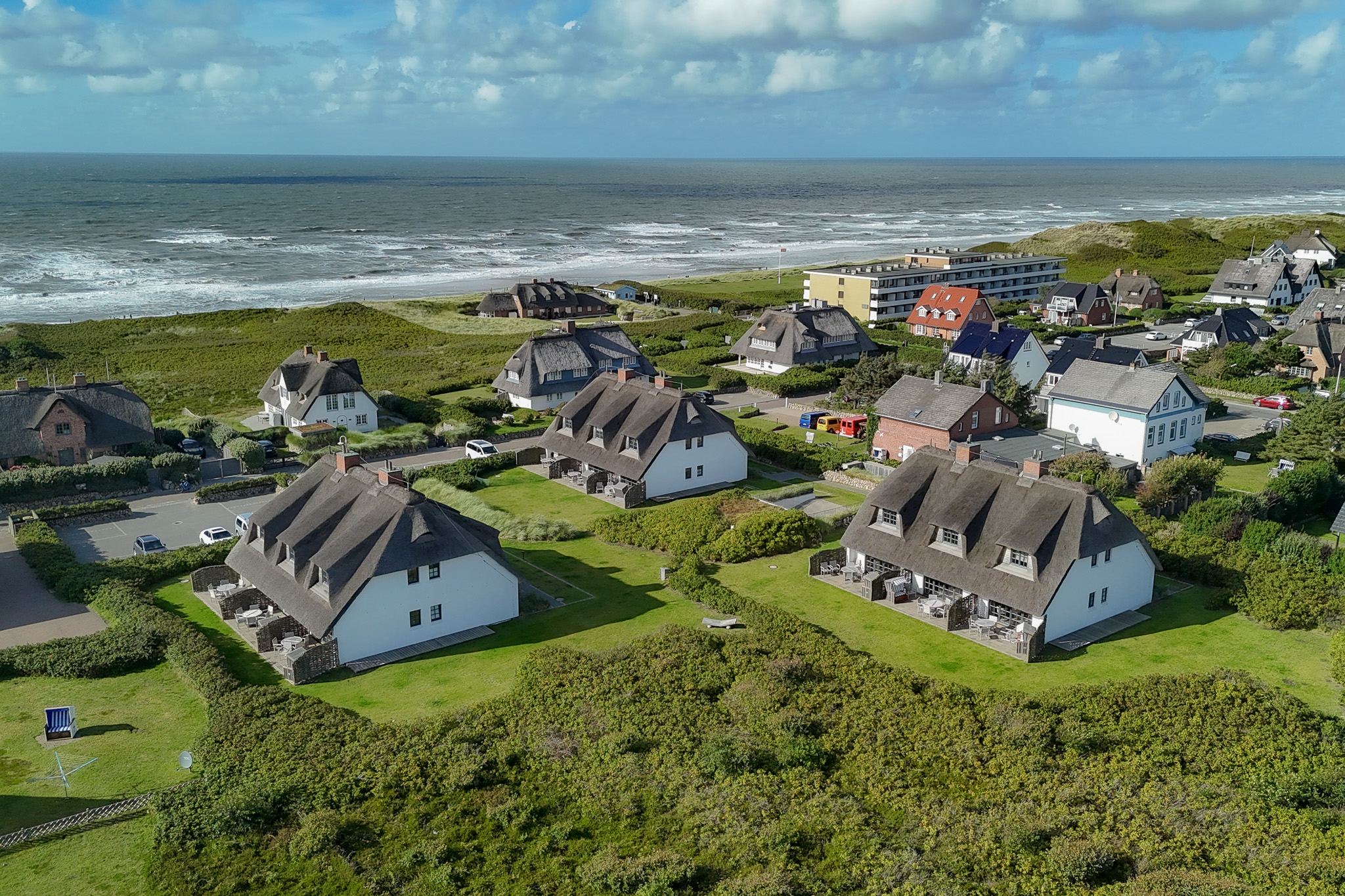 9 stilvolle und sehr strandnahe Reetdach-Ferienhäuser in Wenningstedt mit Sauna, Kamin, Meerblick & Südterrasse – für 2 bis 6 Personen geeignet.