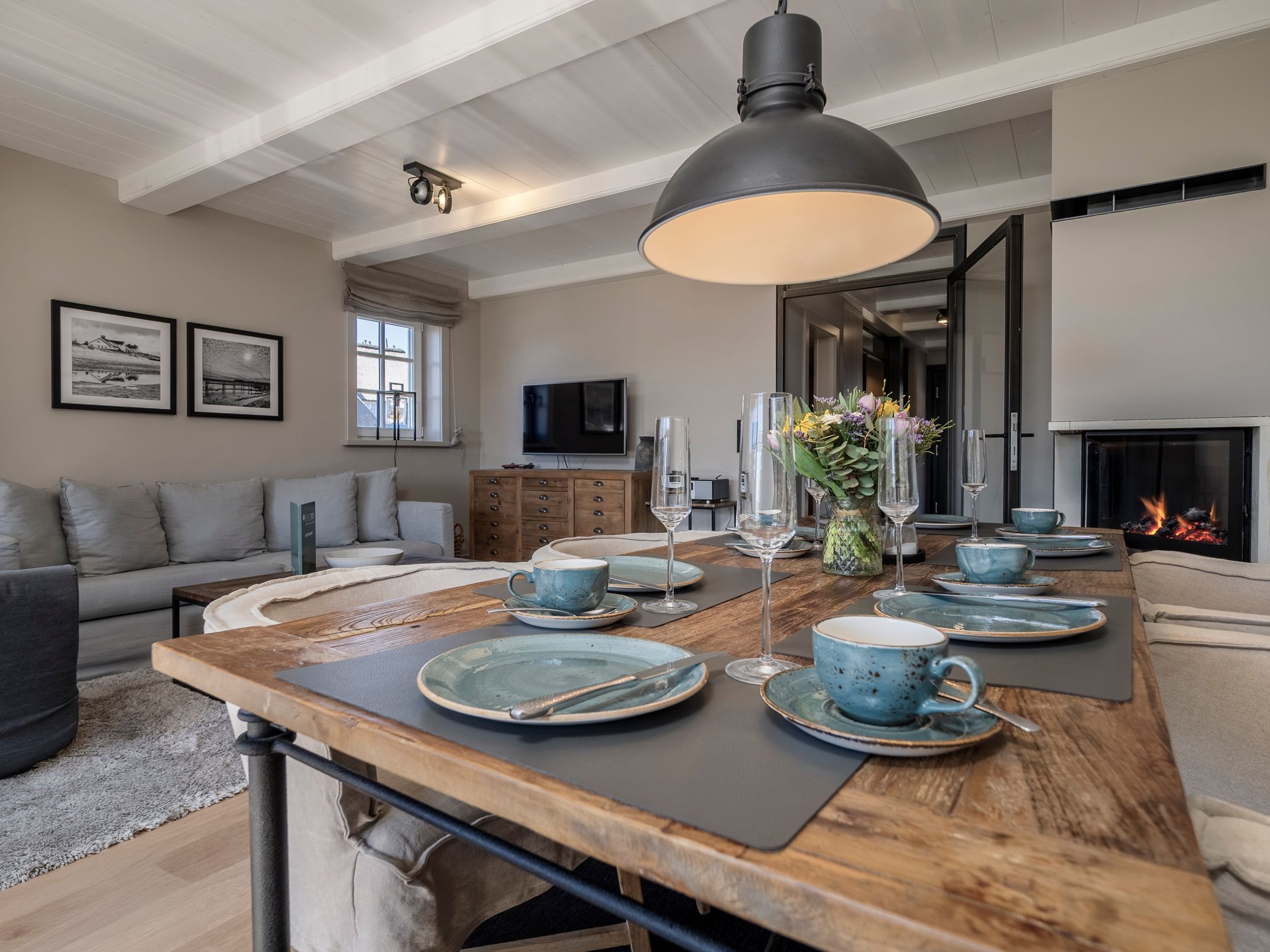 Im Erdgeschoss ist vom Flur aus die geschlossene Küche mit kleinem Essbereich und das separate Wohn- und Esszimmer begehbar. Die moderne und hochwertig ausgestattete Küche lässt mit Induktionsherd und integrierter Dunstabzugshaube, Mikrowelle mit Backofen-Funktion, Weinkühlschrank, Nespresso-Kapselmaschine und SodaStream Wassersprudler keine Wünsche offen. Ein gemütlicher Wohnraum mit freiem Blick in den Garten verfügt über einen Sofa- und Essbereich, die mit Kamin und TV zum Verweilen einladen.