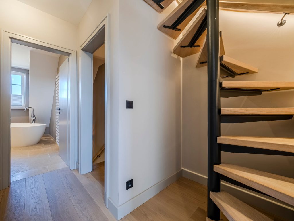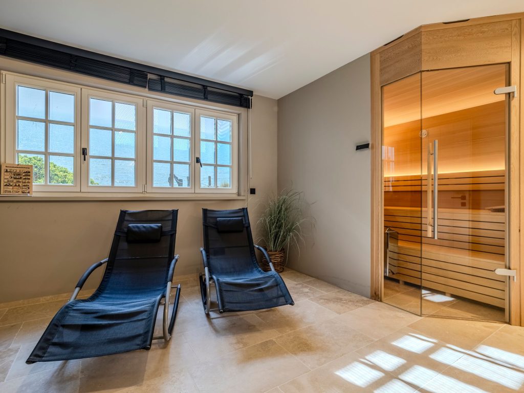 Großzügige Sauna mit schönem Ruhebereich und zwei Liegemöglichkeiten.