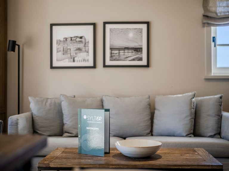 Wohn-/Koch-/Essbereich: Der Wohnbereich überzeugt mit seiner gemütlichen Sofaecke, welche zum Verweilen einlädt. Genießen Sie den hervorragenden Blick auf das Wattenmeer und die... Braderuper Heide. Die helle Küchenzeile im Landhausstil ist perfekt ausgestattet und grenzt direkt an den Essbereich für 4 Personen. Von hier haben Sie einen ausgezeichneten Blick auf den Kampener Leuchtturm. Zur Wohnung gehört eine möblierte Sonnenkuhle mit Strandkorb und Gartenmöbeln. Diese befindet sich links vorm Hauseingang (unter dem Küchenfenster).