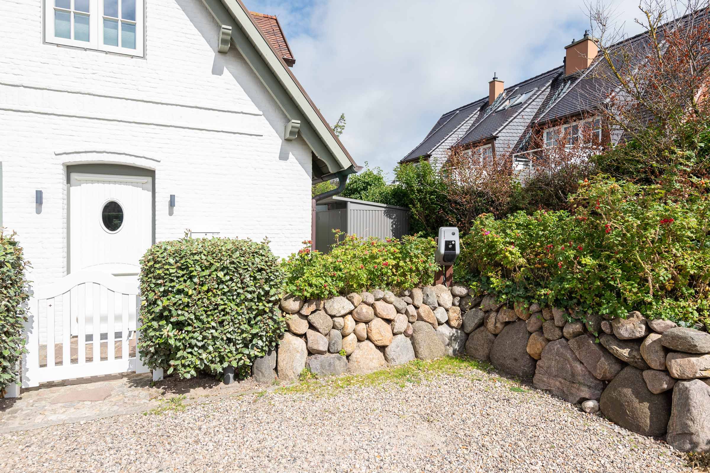 Garten: Das Haus bietet einen schönen und sonnigen Garten inklusive Terrasse, Strandkorb und modernen Gartenmöbeln.