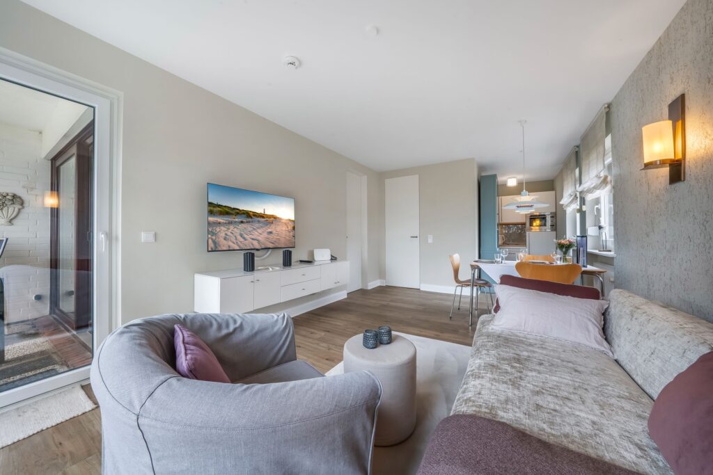 Von hier gelangen Sie auf die großzügige und neu möblierte West-Terrasse mit eigenem Saisonstrandkorb (ca. April bis Oktober) und können dem Meeresrauschen der Nordsee lauschen.