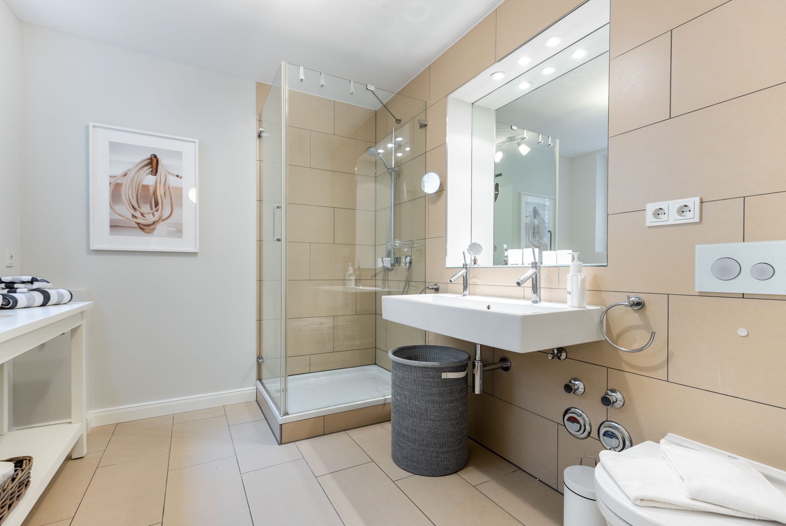 Koch-/Wohn-/Essbereich:... Großer Wohnraum mit Sofa im Loungestil, welches sich schnell in einen hochwertige Schlafplatz verwandeln lässt. Der TV und eine kleine Hifi-Anlage lassen keine Wünsche offen. Integrierte, edle Küchenzeile mit Backofen und Geschirrspüler, sowie großem Essplatz. Auf der Süd-Westterrasse mit kleinem Garten stehen Gartenmöbel und ein Saison-Strandkorb bereit.